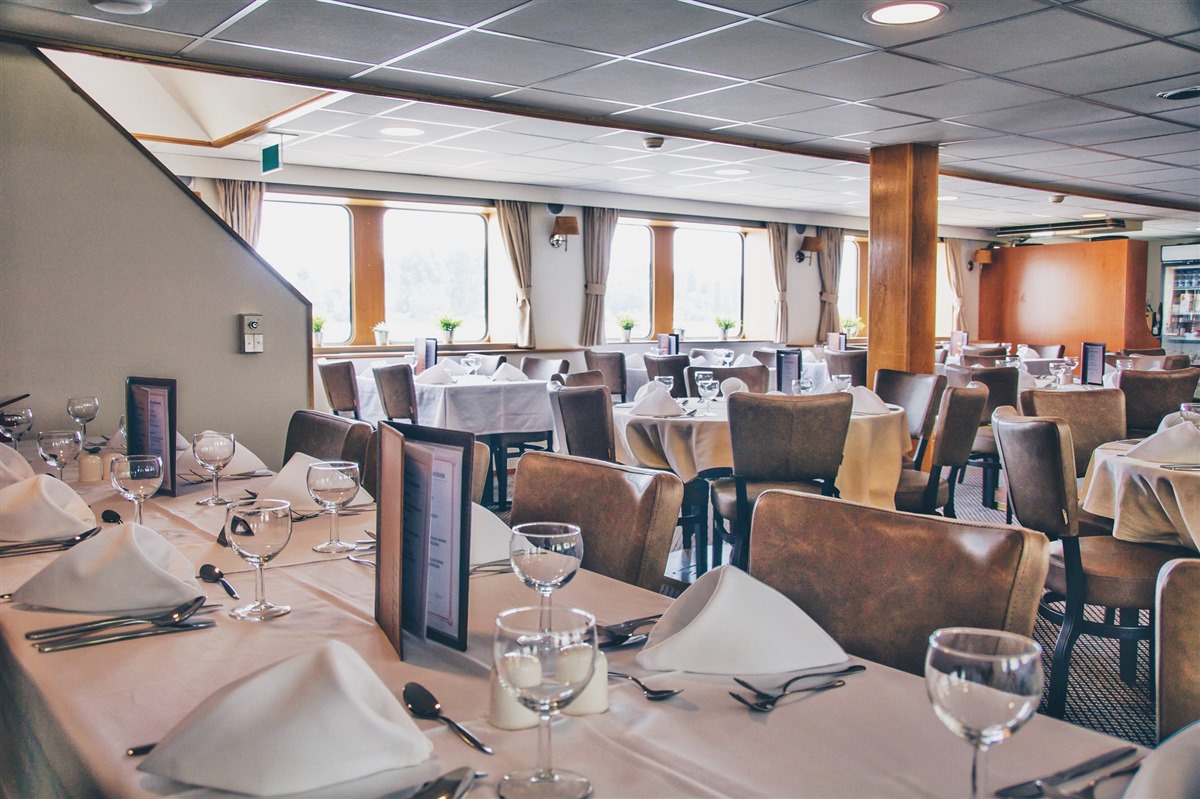 Welcome aboard the MS Arlene! The comfortable ship provides just the right ambiance to make you feel at ease. You’ll find the tastefully furnished, air-conditioned restaurant on the main deck, and the upper deck holds the lounge and bar area with full, panoramic windows.