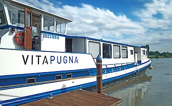 The Vita Pugna initially started out as a cargo boat and was renovated into a passenger ship in the 1990s. This Dutch boat is 118 ft long, 18 ft wide, and boasts two decks. The Vita Pugna…