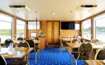 A former shuttle barge converted into a passenger ship, the Anna Antal is an exclusively cozy experience. In 2012, the saloon and cabins were fully renovated.